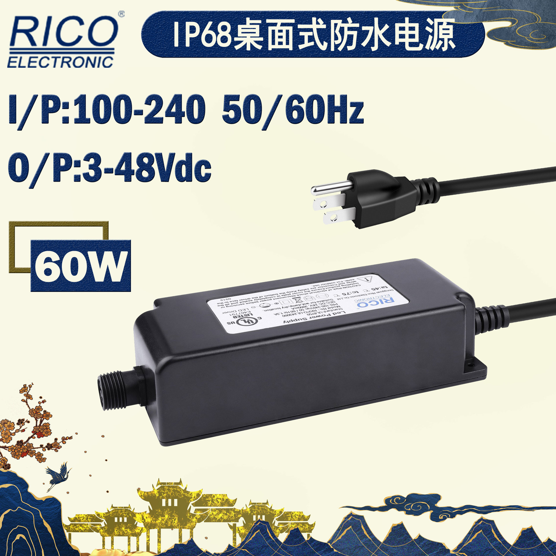 ソース工場卸売電源アダプタUL/CUL 24V 60Wip68デスクトップ防水電源アダプタ