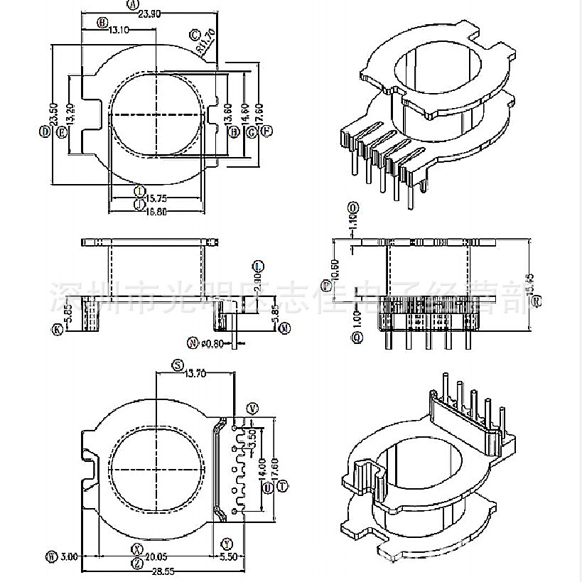 Atq2818高周波骨格変圧器骨格atq28電木骨格縦型5 + 0針骨格