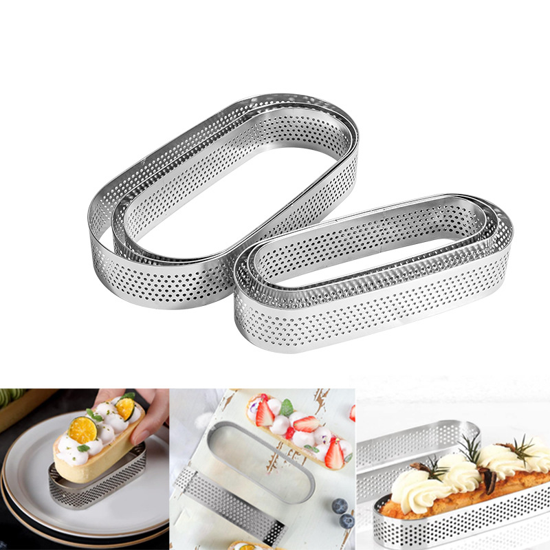 新品430ステンレス楕円形パンチング2.5タルトリング穴付きフレンチチーズ塔ムースリング金型