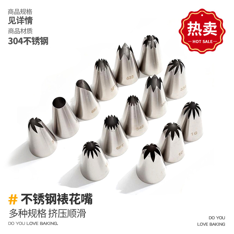 ロシア表装花口セットステンレス一体成型クリームケーキ装飾花口平口花口口