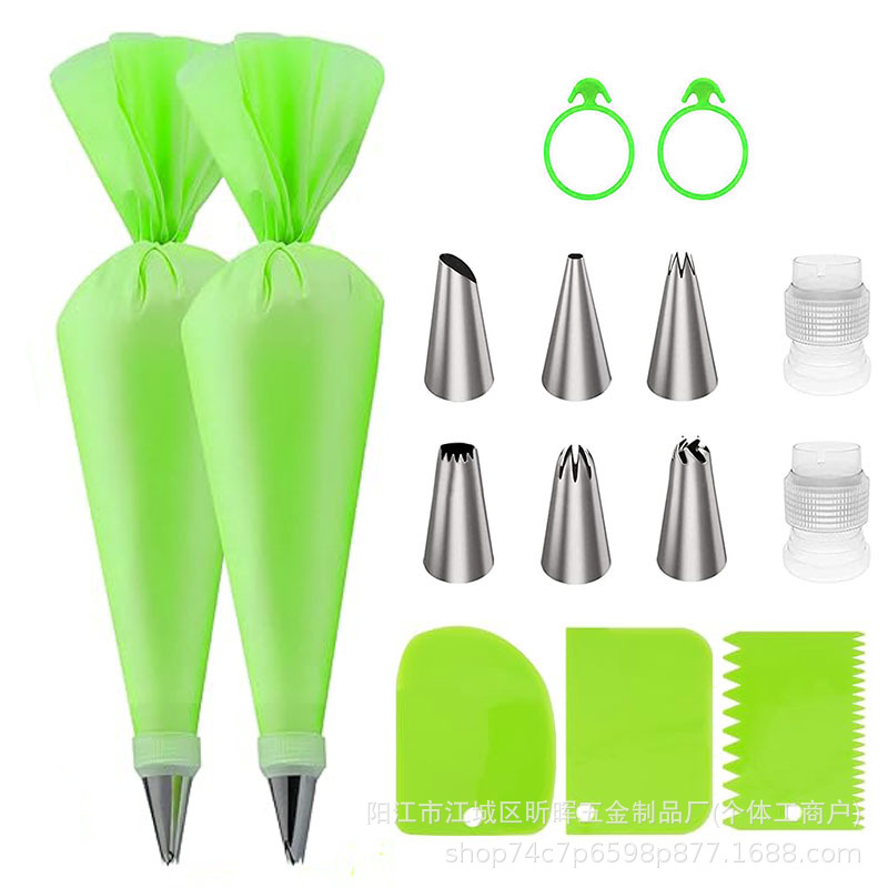 跨境15件套裱花嘴套装蛋糕DIY奶油刮板硅胶圈裱花袋装饰烘焙工具