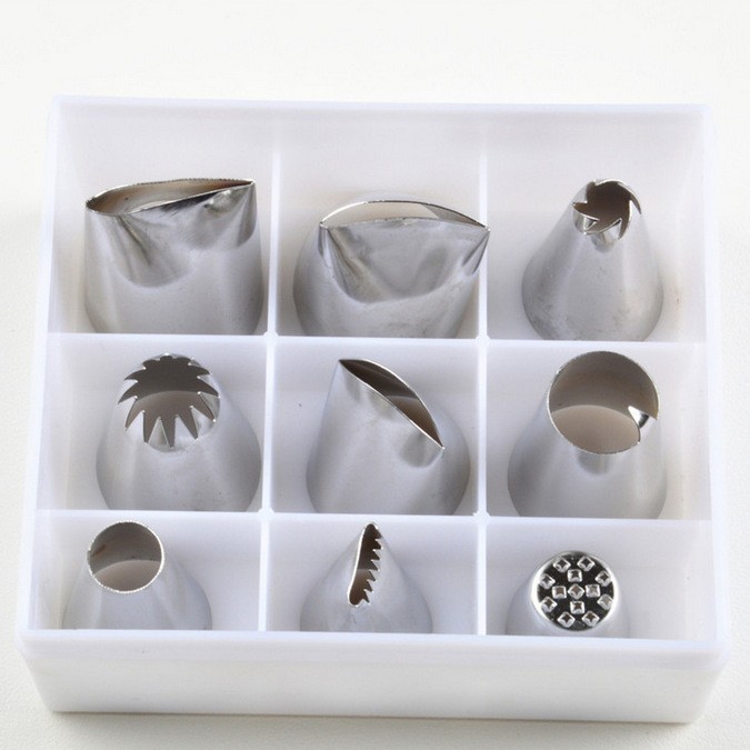 ステンレスの韓国式クリーム袋の表装の口のセットの表装の花は乳首の変換器を切って10セットの卸売りを焼きます。