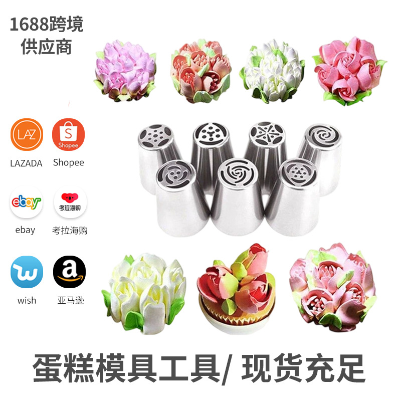7 ピースステンレス鋼ロシア装飾ノズルセットケーキクリームデコレーションベーキングツール工場在庫