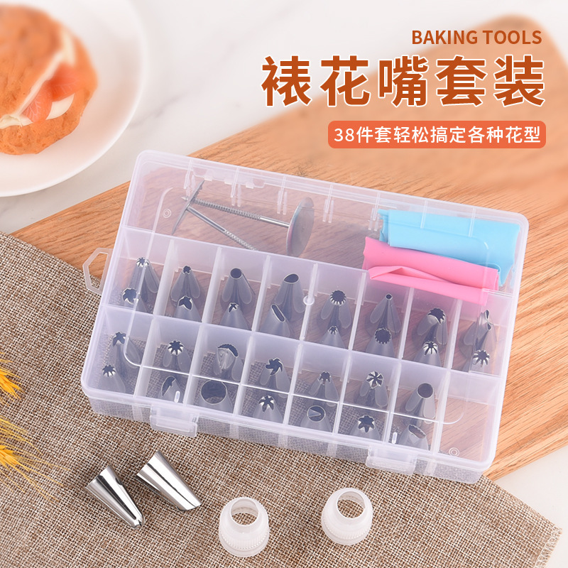 24グリッドプラスチックボックス、デコレーションバッグ、デコレーションノズルセット、ステンレス鋼デコレーションノズルセット、デコレーションツール