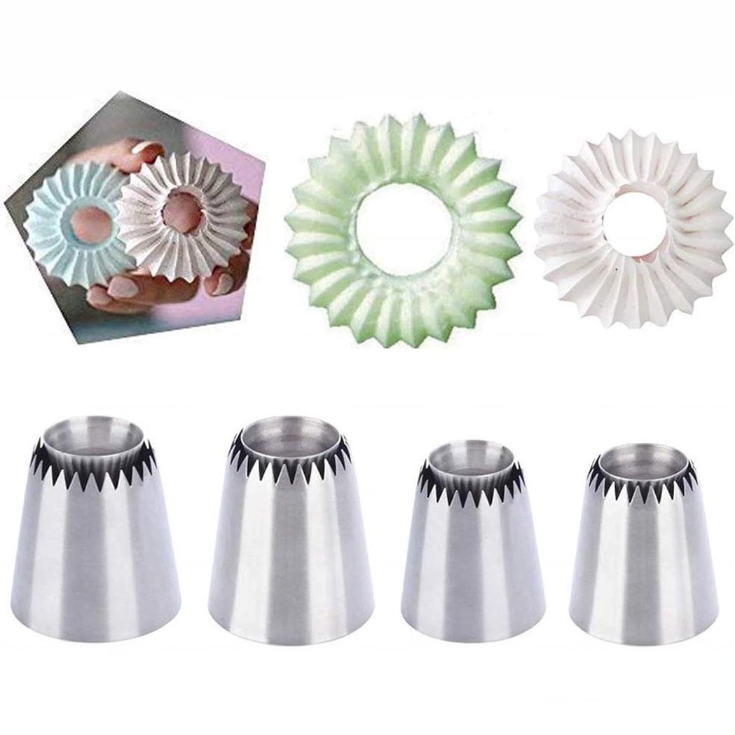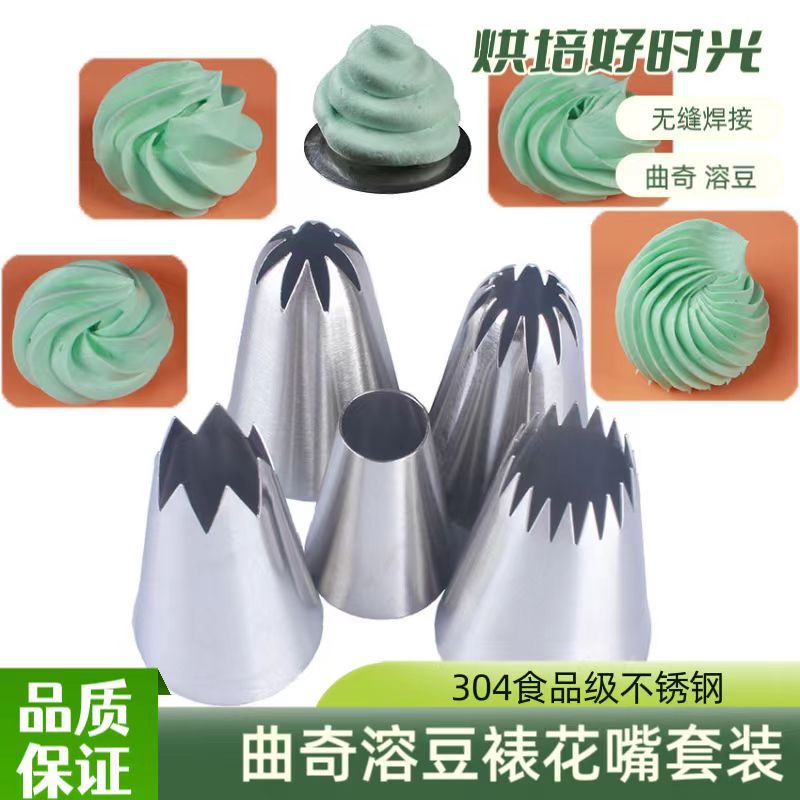 5ピース大型ラウンドマルチトゥースセットデコレーションノズルセットケーキビスケットクリームベーキングツール304ステンレス鋼