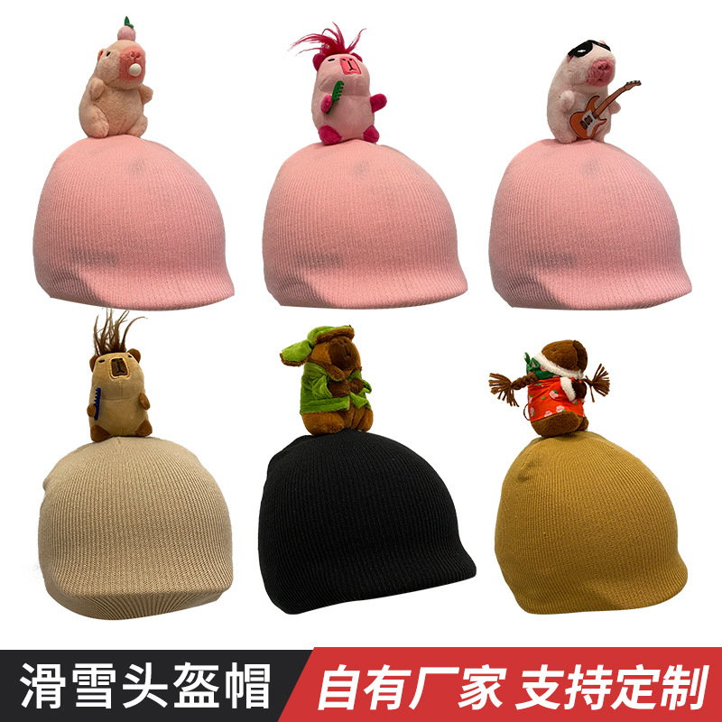 かわいい漫画風のスキーヘルメットカバー、保温性があり個性的なシングルボード・ダブルボードカバー、自転車用人形装飾、防風カバー、おしゃれ