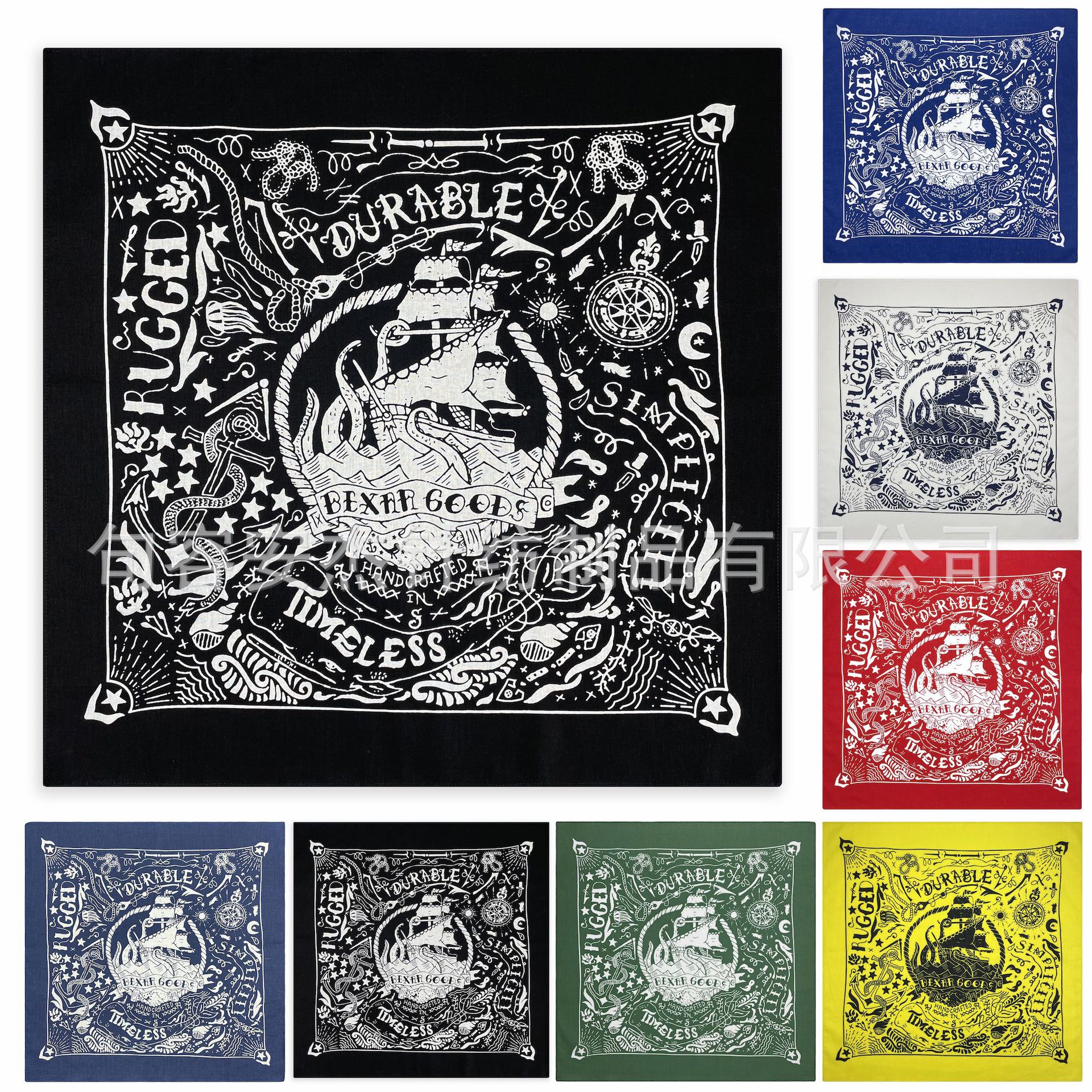 55cm純綿プリント角巾lost at sea航海角巾ヒップホップストリートダンス屋外ヘッドタオルバンダナ