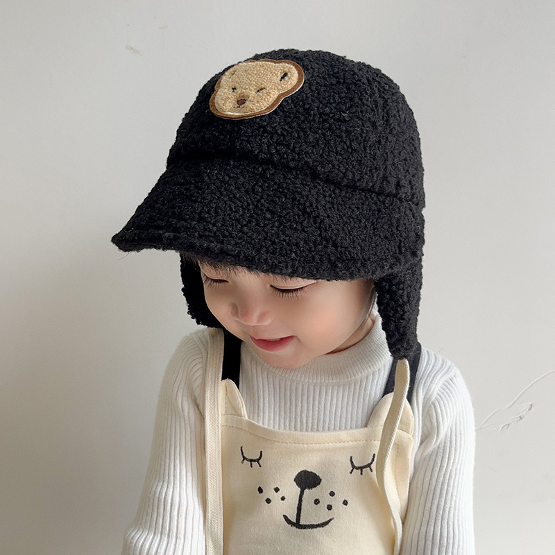 調整可能なベビー帽子秋冬ベビー子供保温テディベアぬいぐるみ耳当て帽子赤ちゃんアヒル舌帽子