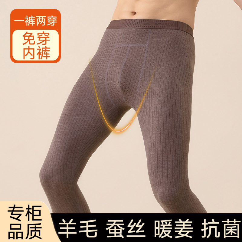 男性用秋用下着、保温性のあるインナーパンツ、レギンス、ウールパンツ、タイトフィット、防寒、起毛、若者向け、2025年秋冬