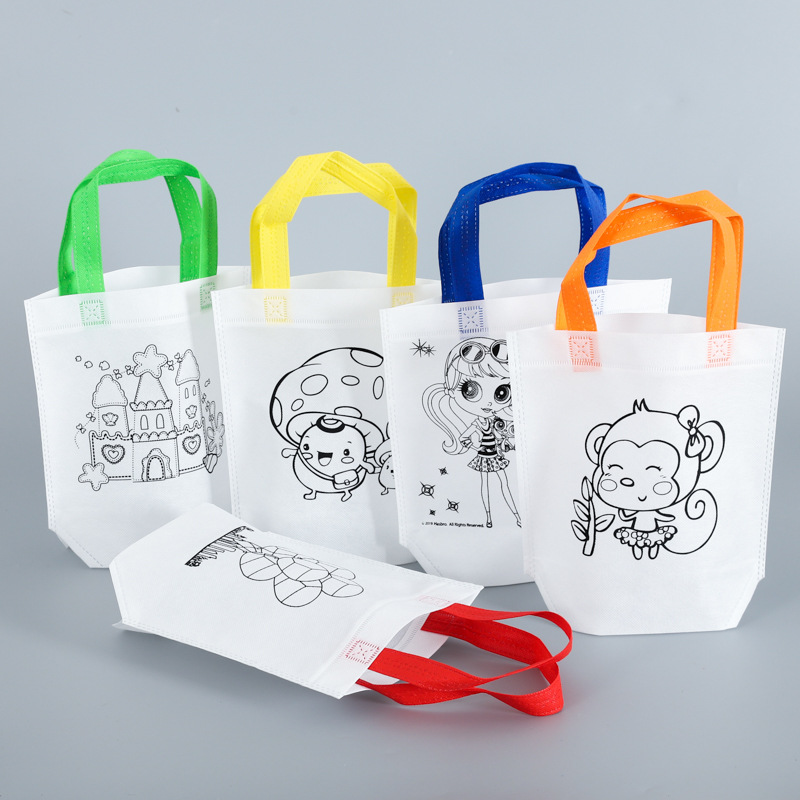 不織布手提げ袋創意diy子供絵画塗装落書き材料バッグ漫画空白手提げ袋