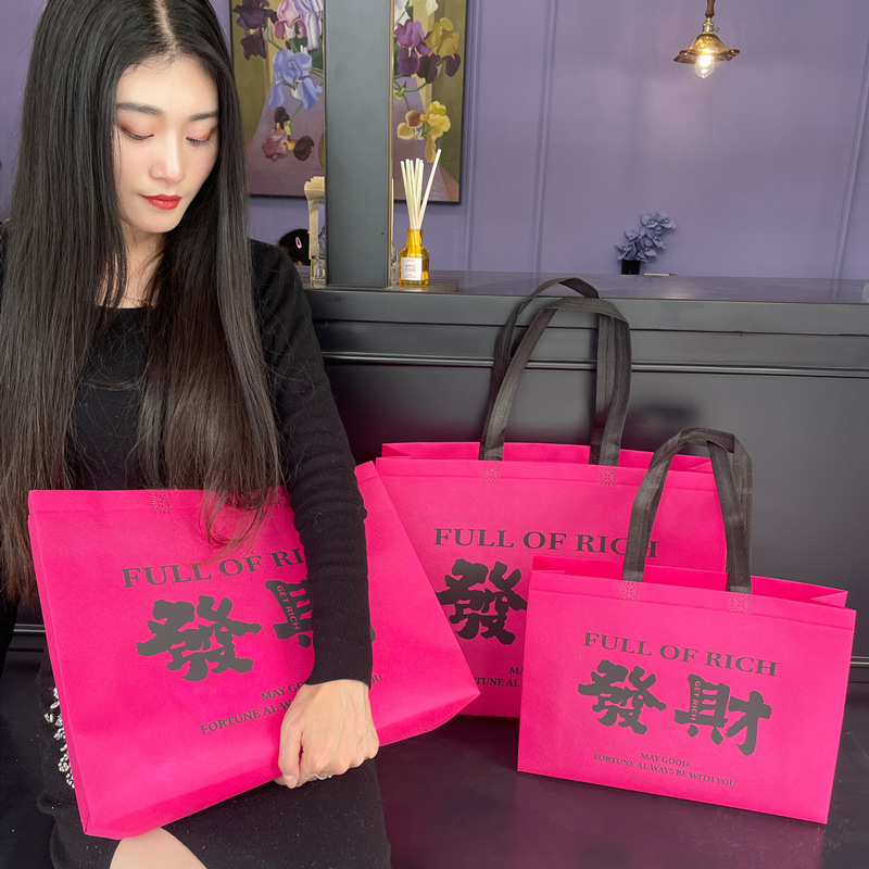 大紅不織布ギフトバッグ機印環境保護袋福字袋ギフトバッグ手提げ袋タバコ茶酒袋共通包装