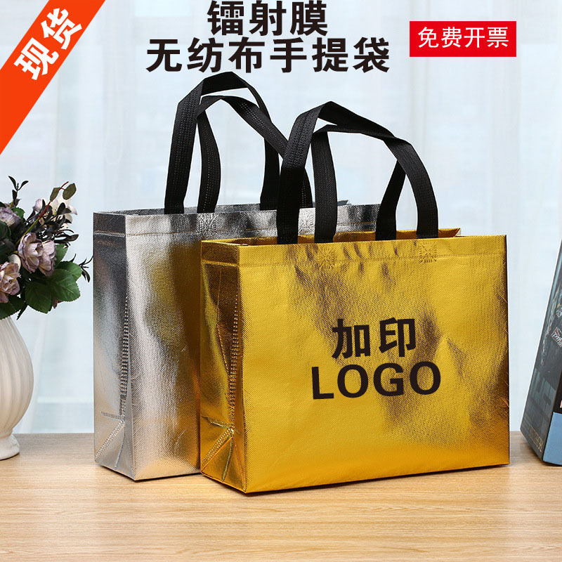 メーカー現物金銀色折り畳み不織布手提げ袋カラー印刷膜不織布袋レーザー袋ギフトバッグ