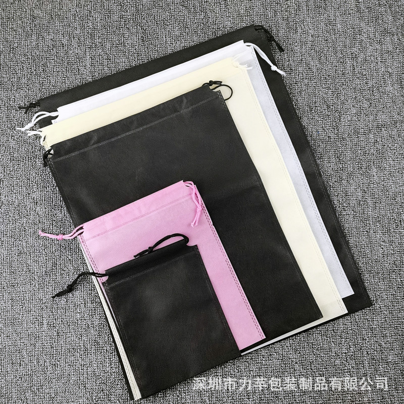 无纺布服装抽绳袋收纳袋通用白色现货可丝印图案防尘双抽束口袋子