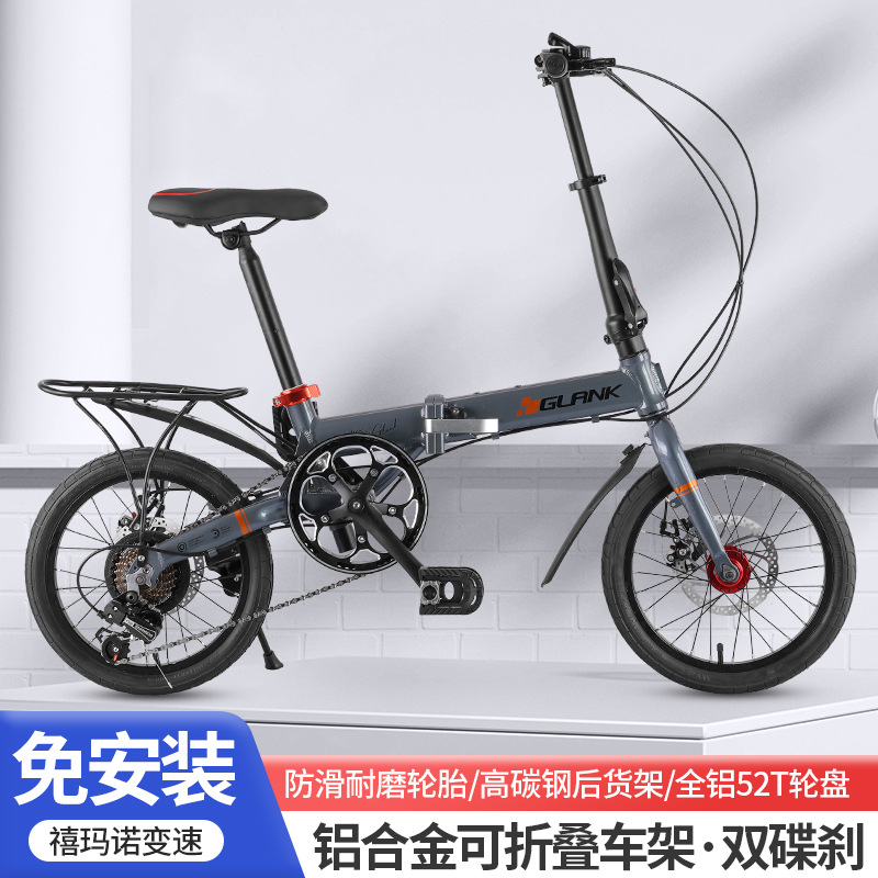 16inch アルミニウム合金折りたたみ自転車学生用自転車大人用通勤ディスクブレーキ可変速自転車ユニバーサルモデル