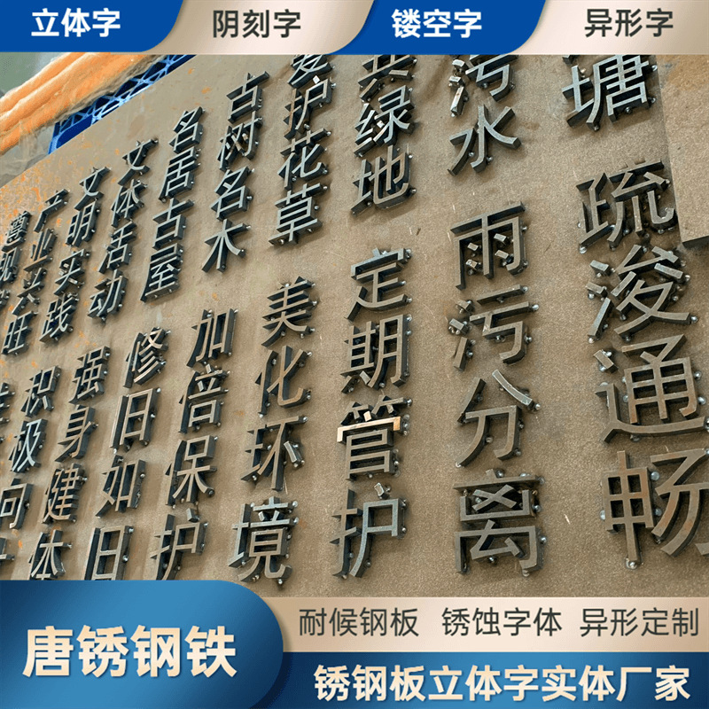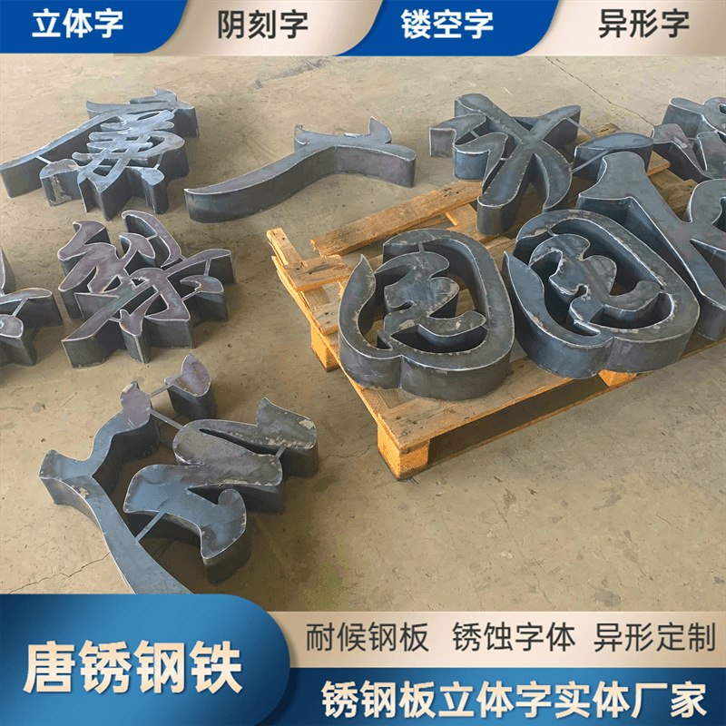 メーカーカスタマイズ企業耐候鋼立体字耐候鋼板書体加工透かし彫り鉄錆鋼板立体字