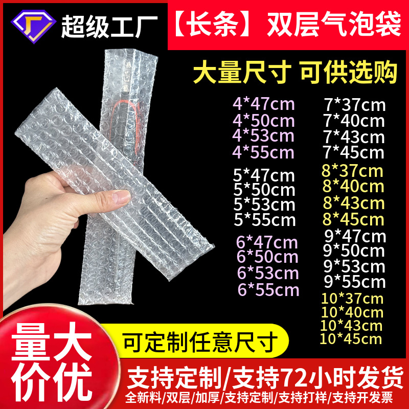 5*40/8*50長条商品防震防打包装袋気泡袋二重厚気泡袋発泡袋