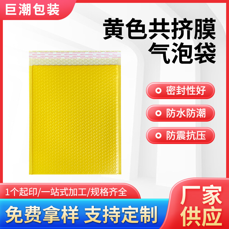 厚みのある黄色の共押出フィルムバブルバッグ電子商取引衣類バブル包装袋エクスプレス包装袋自己粘着バブルバッグ