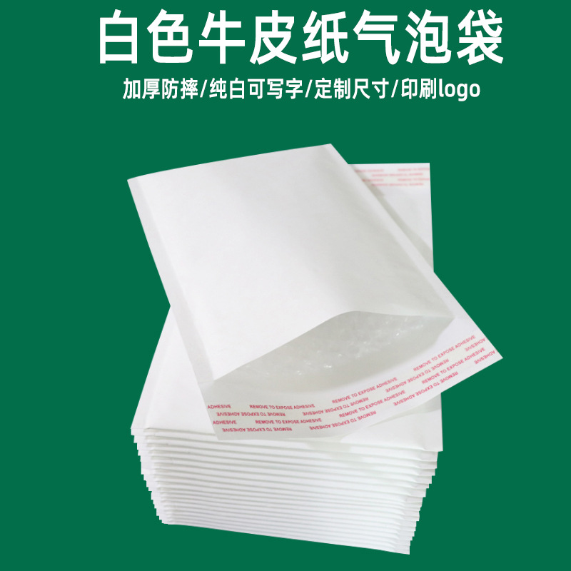 白いクラフト紙気泡封筒袋宅配便包装自封防水防振転倒厚さロゴサイズ卸売り