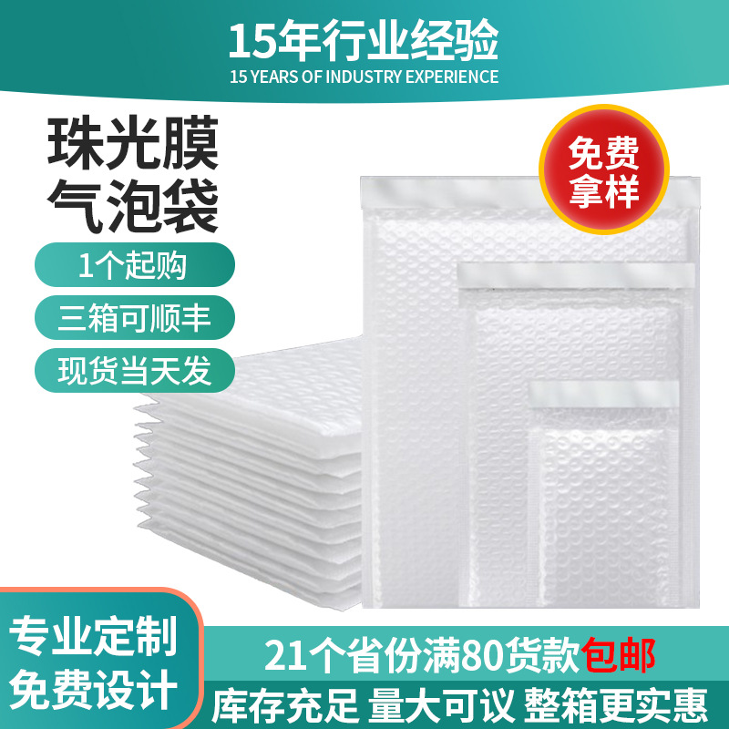 白色複合珠光膜気泡袋自己接着防水厚い防振包装宅配袋自己接着気泡袋