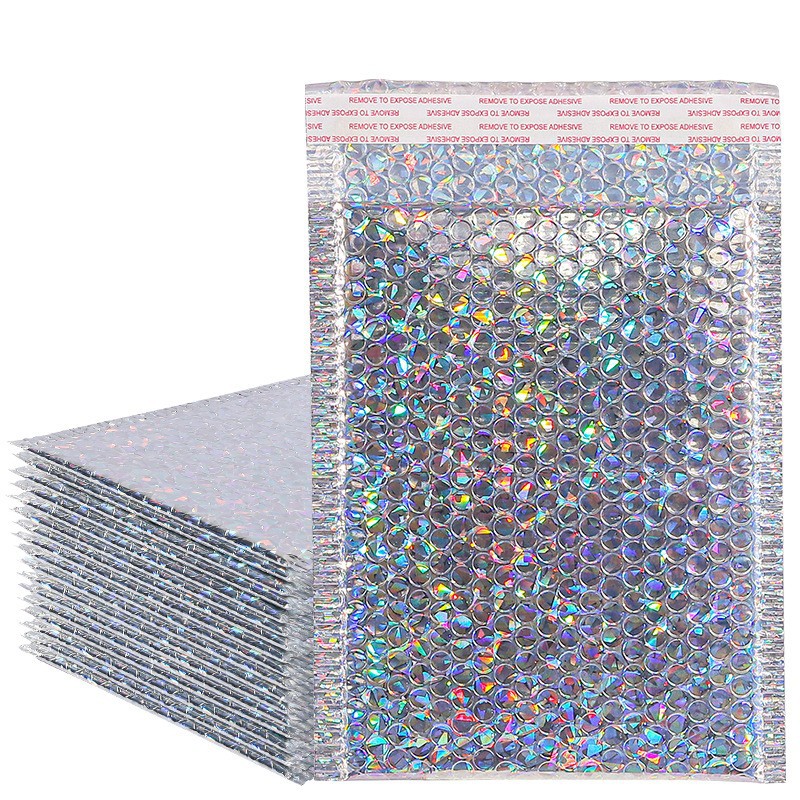 銀色のまぶしいレーザーフィルムの気泡袋を厚くして、自粘袋の速達の泡袋の卸売りの防震の泡袋を包んで包装します。