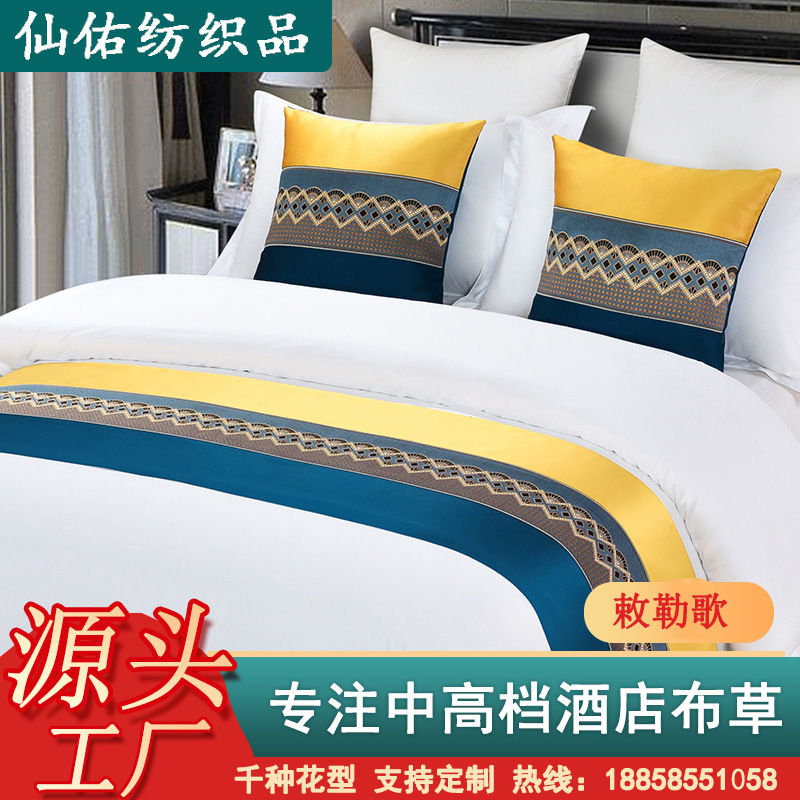 特徴的な民族風ホテル・旅館のベッドランナー、シンプルなベッドランナー、越境ホテルの布地、仙佑テキスタイル