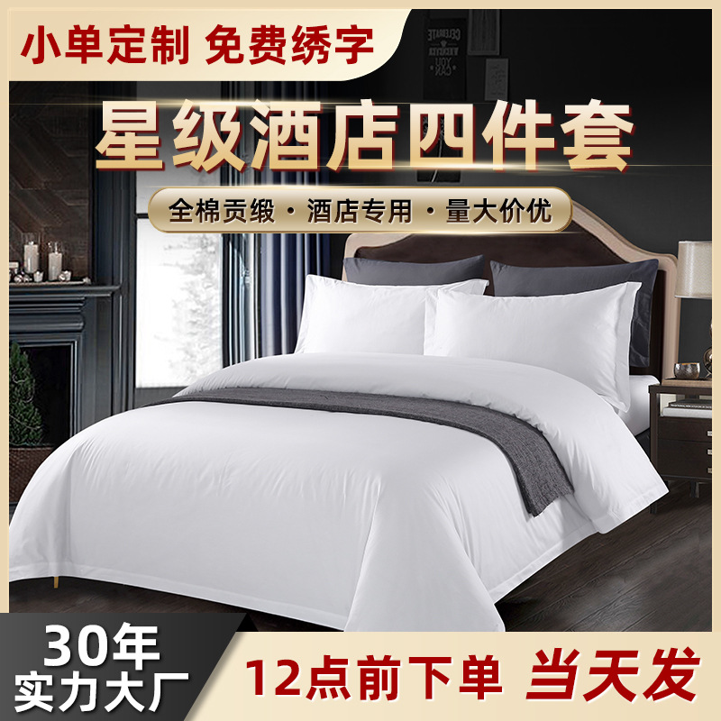 ホテル布草ホテル寝具純綿功サテン民宿専用功サテン布団カバーシーツ4点セット