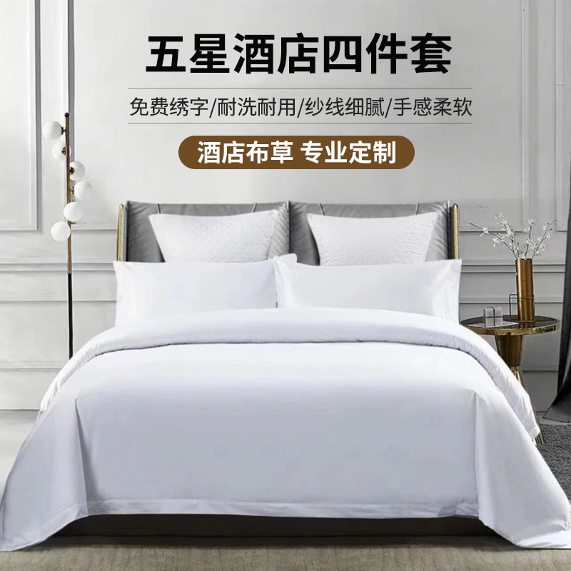 ホテル布草シーツ布団カバー純綿純白功サテンホテル民宿五星ホテルベッド用品ホテル四点セット