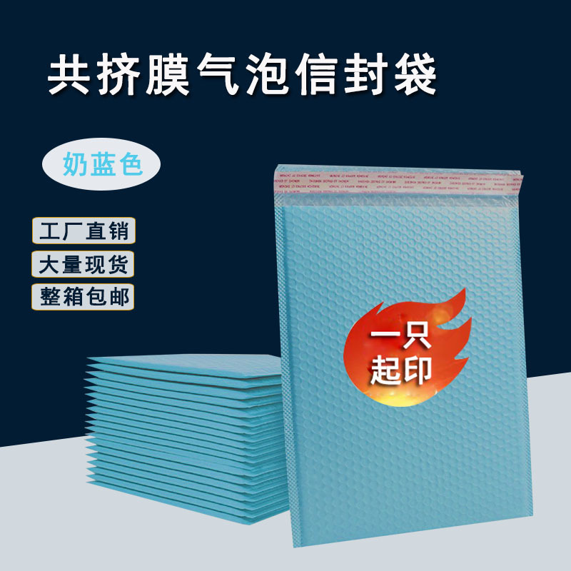 ミルクブルー共押出膜気泡袋水色包装袋泡服装防震厚厚小カード包装宅配袋