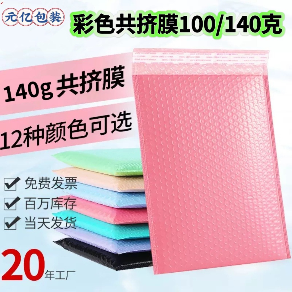 140 グラムカラー共押出フィルムバブルバッグ自己粘着バッグピンクブラックミルクブルーヌードパウダーライトパープルアボカドグリーン全箱