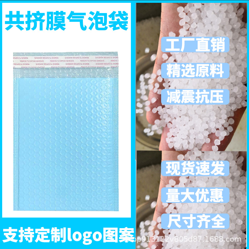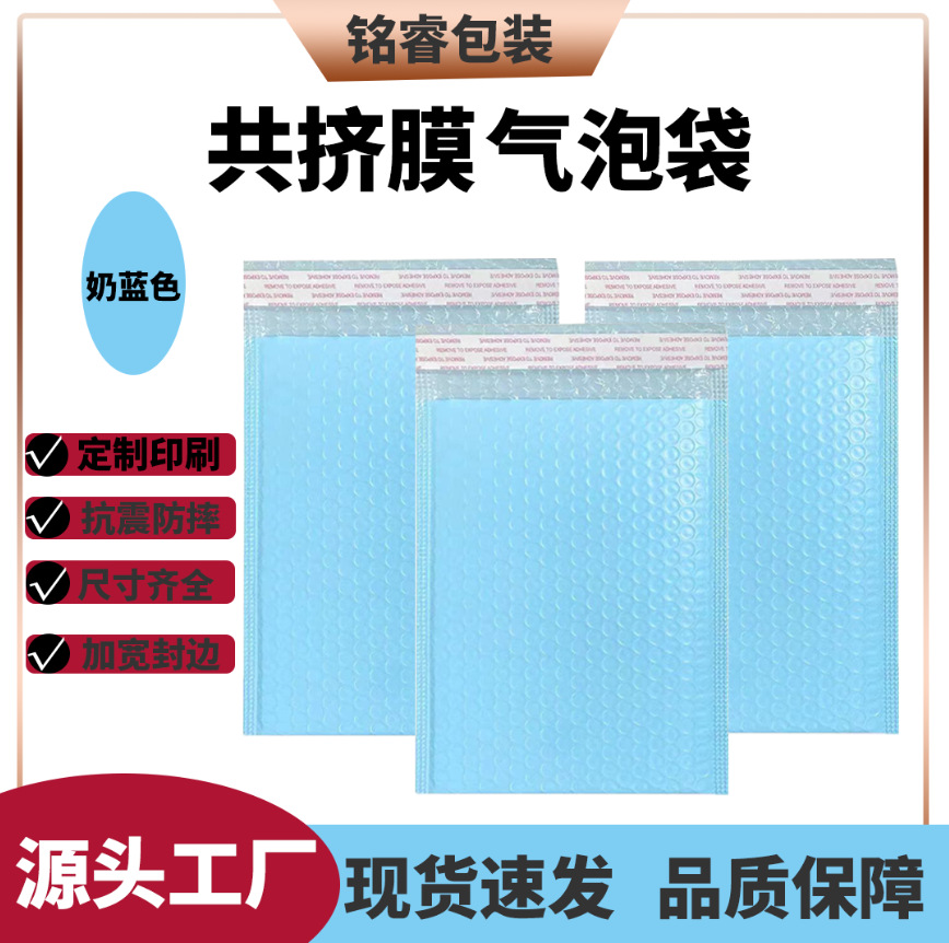 ミルクブルー共押出フィルムバブルバッグ耐衝撃バブル粘着バッグエクスプレス衣類包装バブルバッグセルフシール包装袋