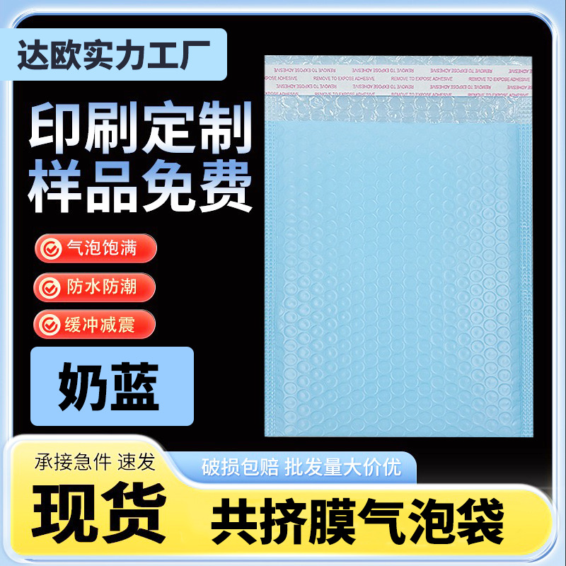 ミルクブルーのバブルバッグ卸売増粘共押出フィルムバブルエクスプレス包装袋カラー大量粘着袋