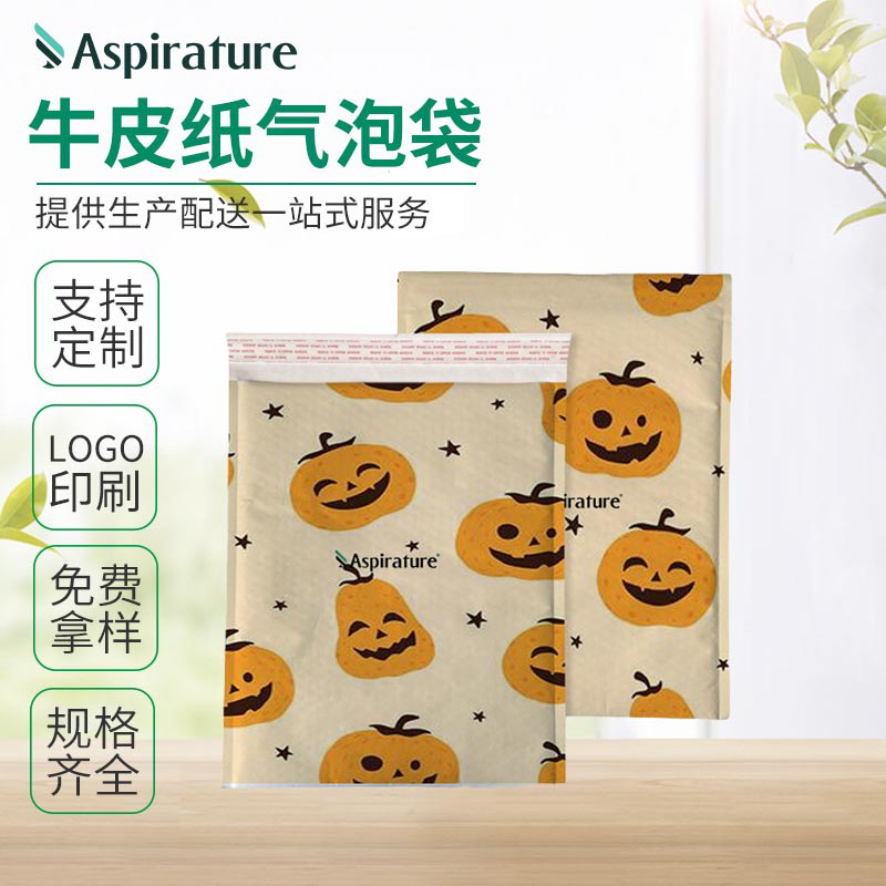 クラフト紙気泡封筒袋クリスマスプレゼント包装袋黄色カボチャ頭クラフト紙泡袋カスタマイズ可能