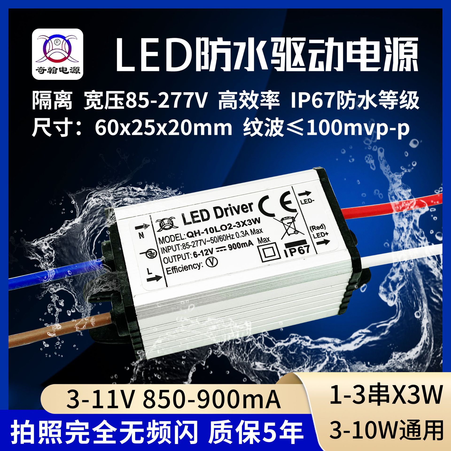 絶縁無ストロボ6w7w8w9w10w900ma2-4ストリングx3と投光器防水led定電流駆動電源