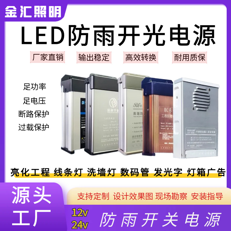ブラックゴールドスチール LED スイッチング電源 12V24V ライトボックス発光ワードラインライトドライバーストライトトランスハイパワー