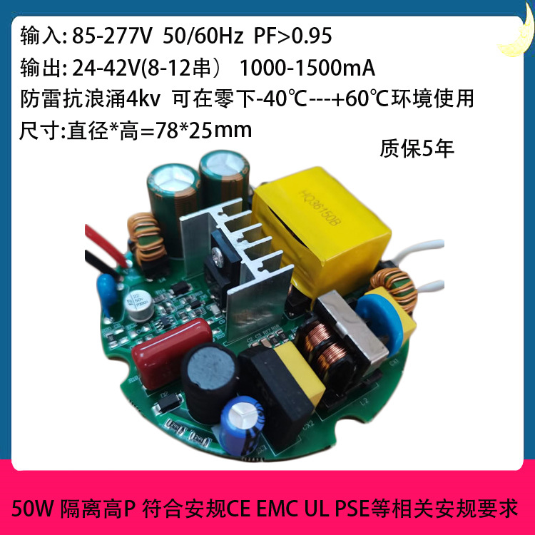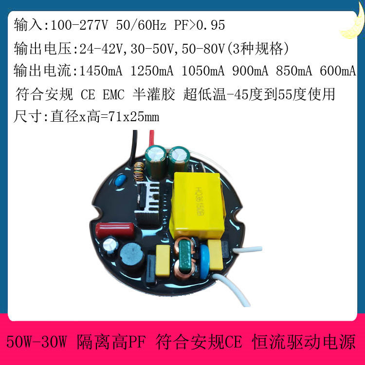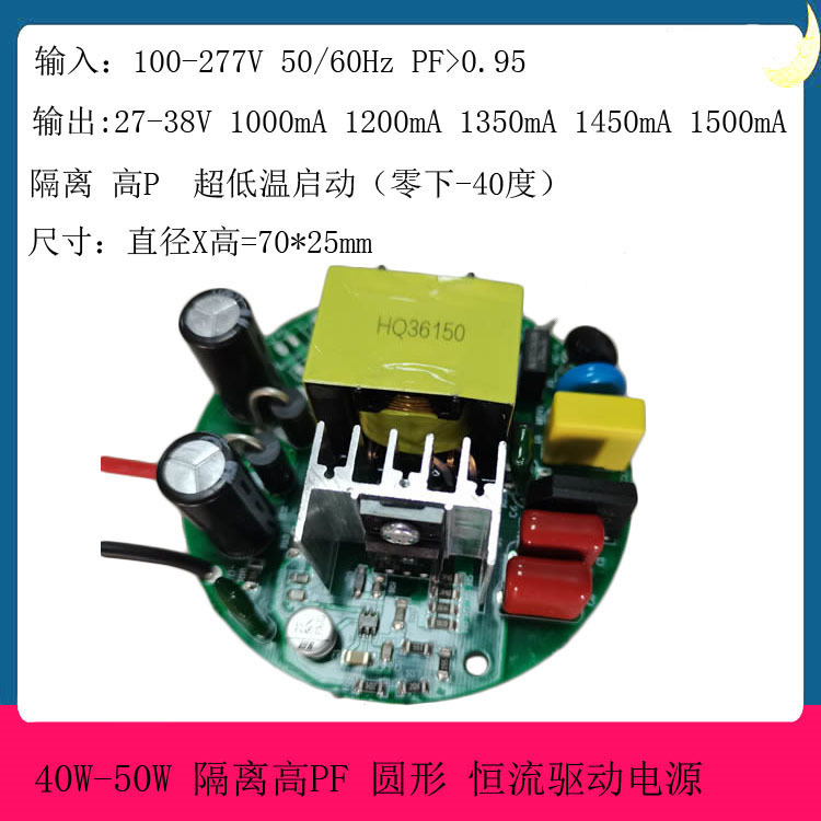 50WLED電源40-50W隔離円形ベアボード電源10-12ストリングコーンライト駆動電源
