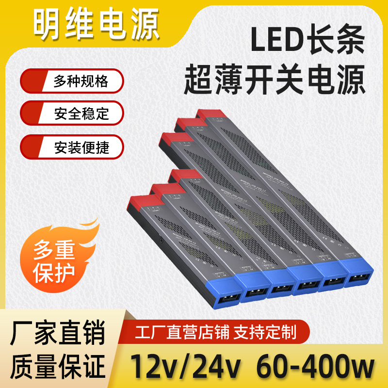 ライト付き電源60-400w 12/24v定電圧スイッチ低圧商用家庭用ロングバー超薄型パワー