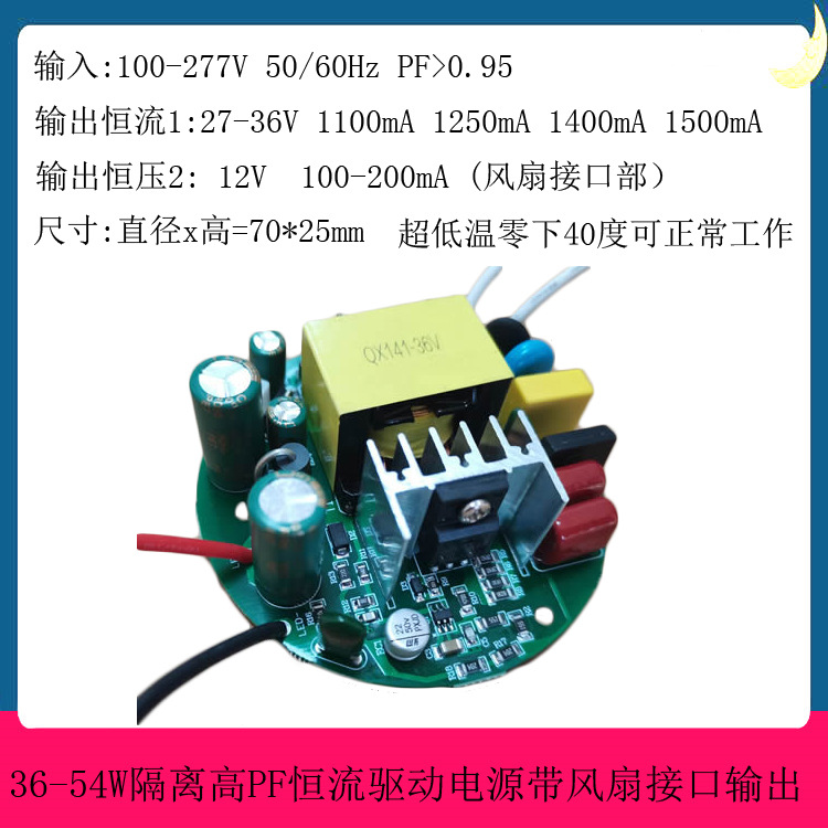 54W電源36-54W絶縁高PF、50w裸板円形トウモロコシランプ定電圧駆動電源12V