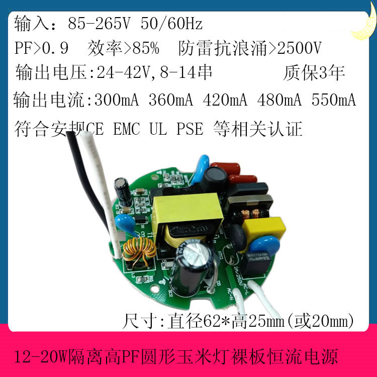 20wled電源6-20w裸板12wトウモロコシランプ電源15w小電源7-24列