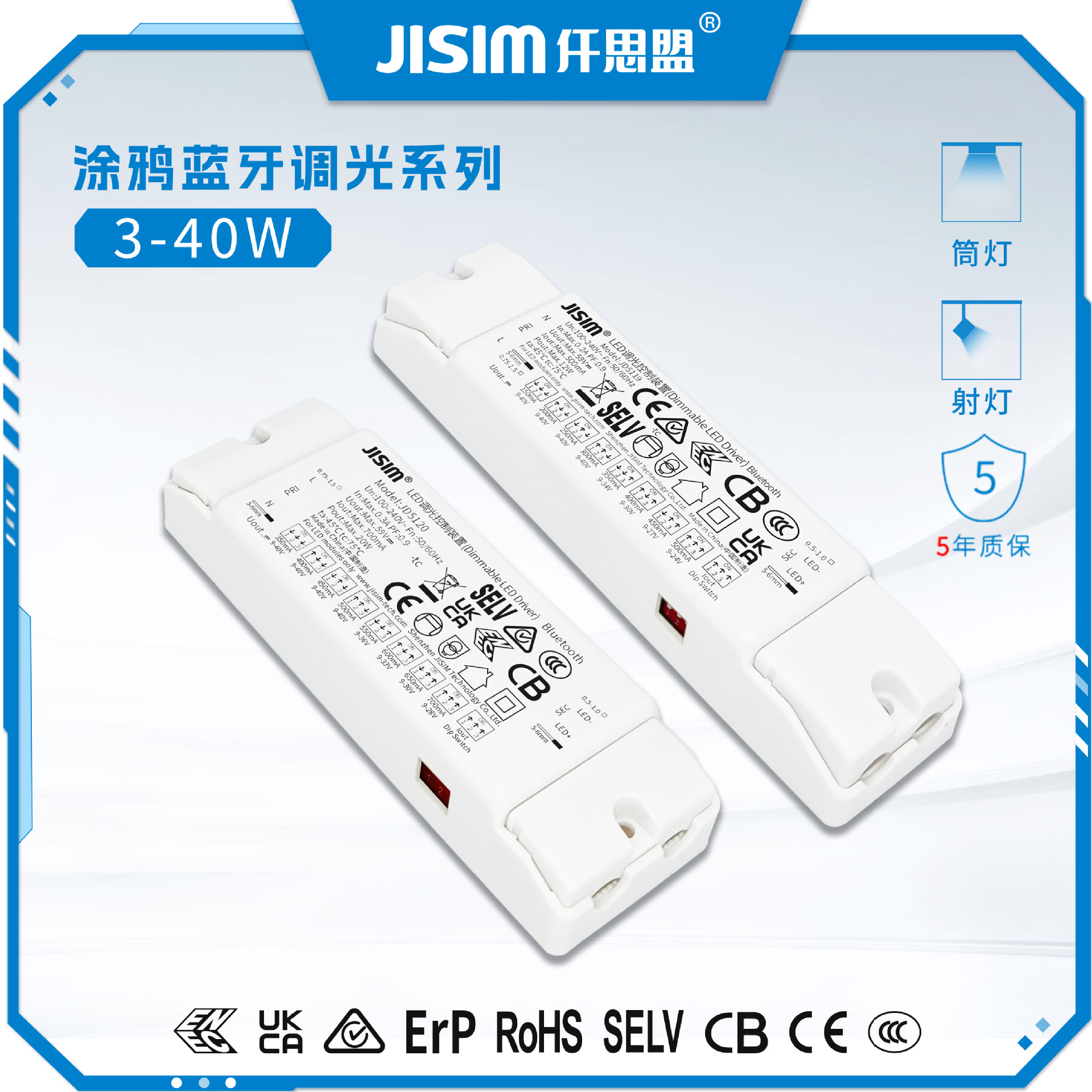 20 - 40W * 2 80W 2色非隔離電源3段調光灯は、インターフェース付きスポット速発
