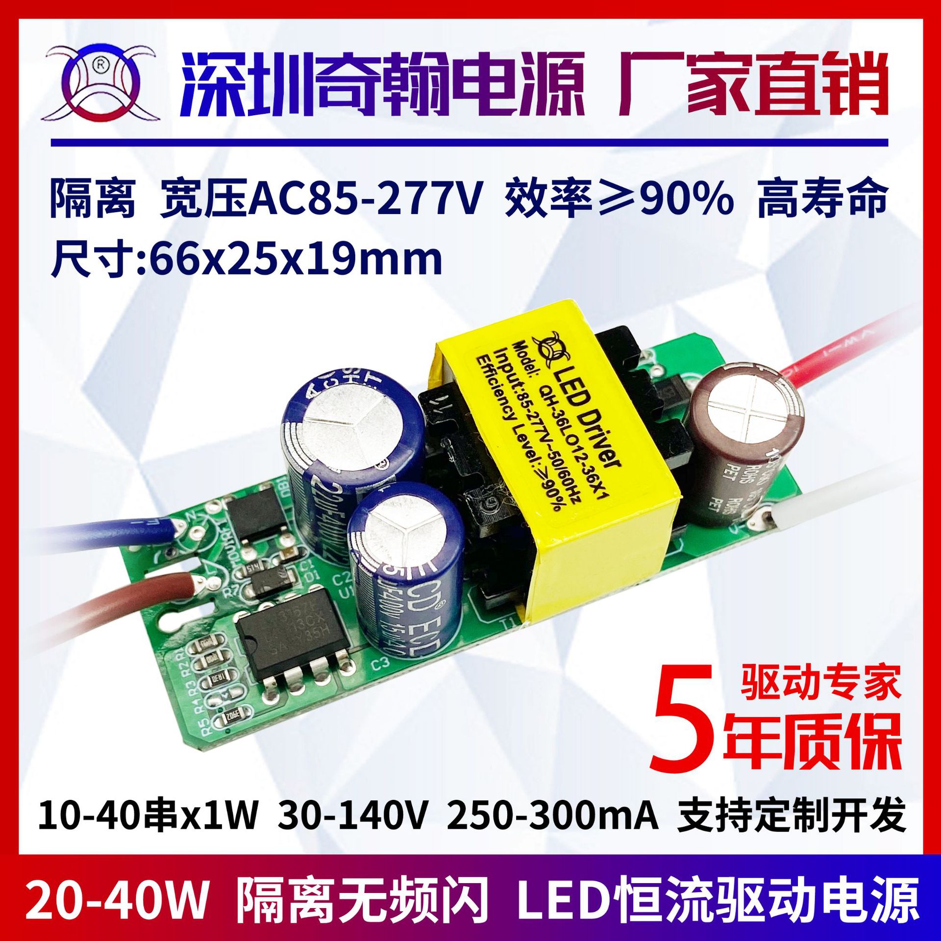 アイソレーションワイド圧ストロボなし24W27W30W36W40W300ma40ストリングx1 w内蔵ベアボードLED駆動電源
