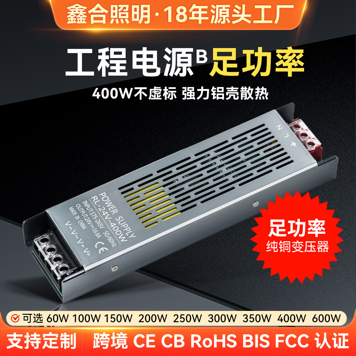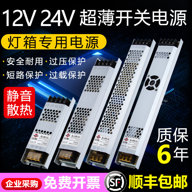 超薄長条ランプハウス電源24V低圧12V線形ランプ変圧器220ボルト回転直流スイッチング電源付き