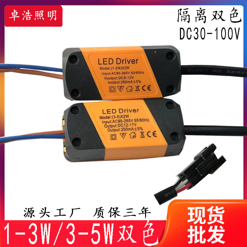 直販卸売り1-3w 3-5w 2色電源定電流ストロボなしメーカー隔離2色駆動電源