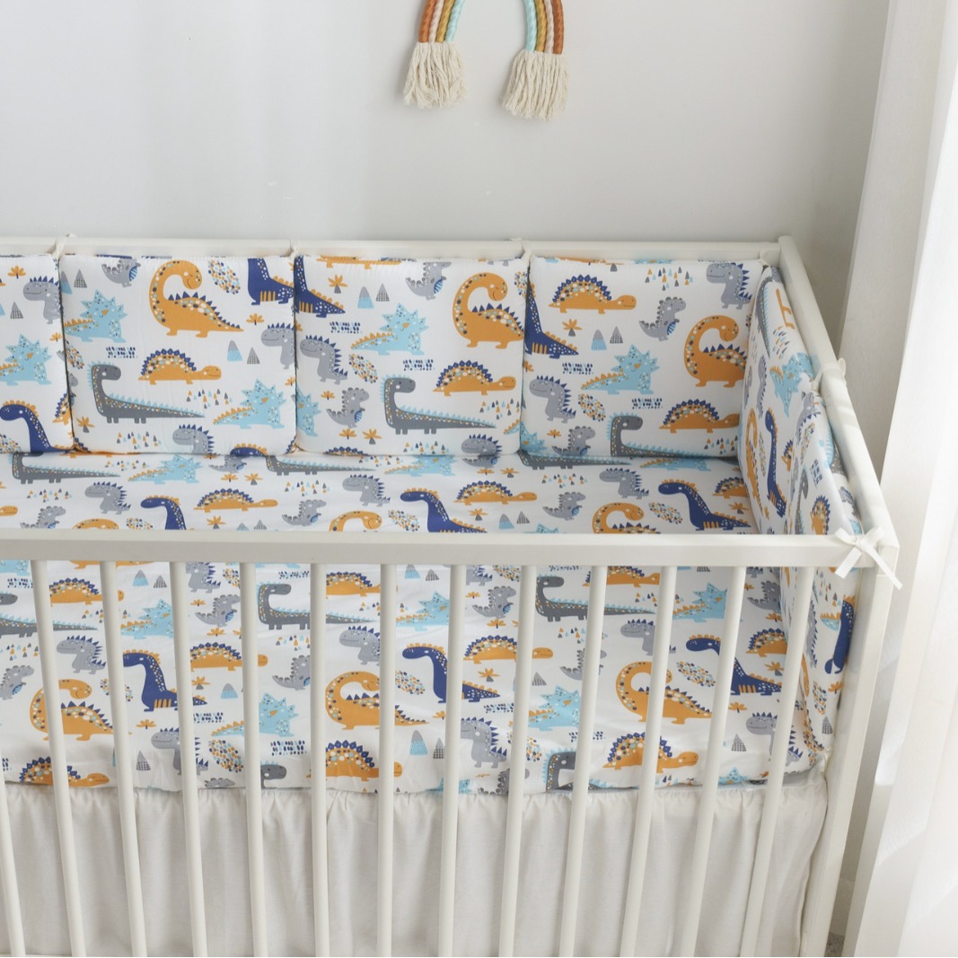 ベビーベッド新生児ベッド用品赤ちゃん衝突防止フェンス綿綿青恐竜30*30*6片洗い