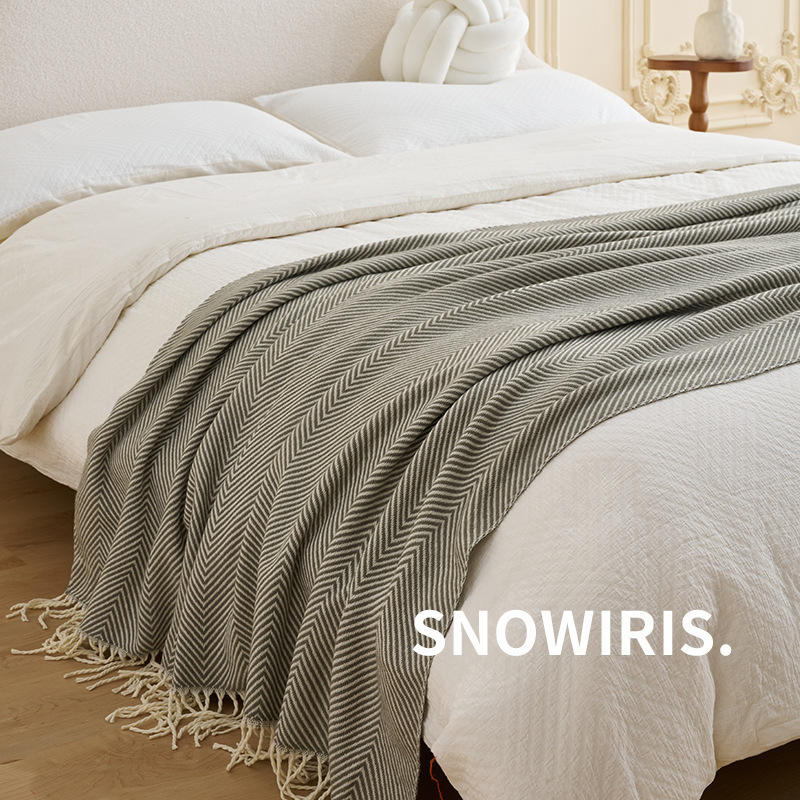 寂しい風のベッドの旗のベッドの尾のタオルの民宿の感の人の字の紋様はじゅうたんのソファーを掛けてタオルを掛けます。