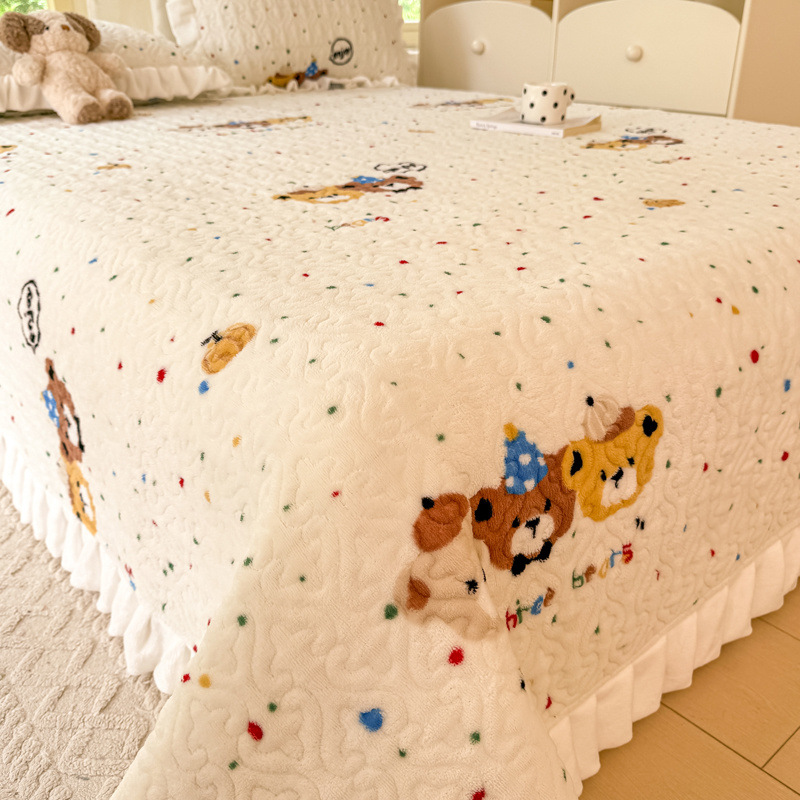 ミルクベルベットのベッドカバー冬保温サンゴフランネル畳滑り止めレース厚手シーツ3点セットオンドルシングル
