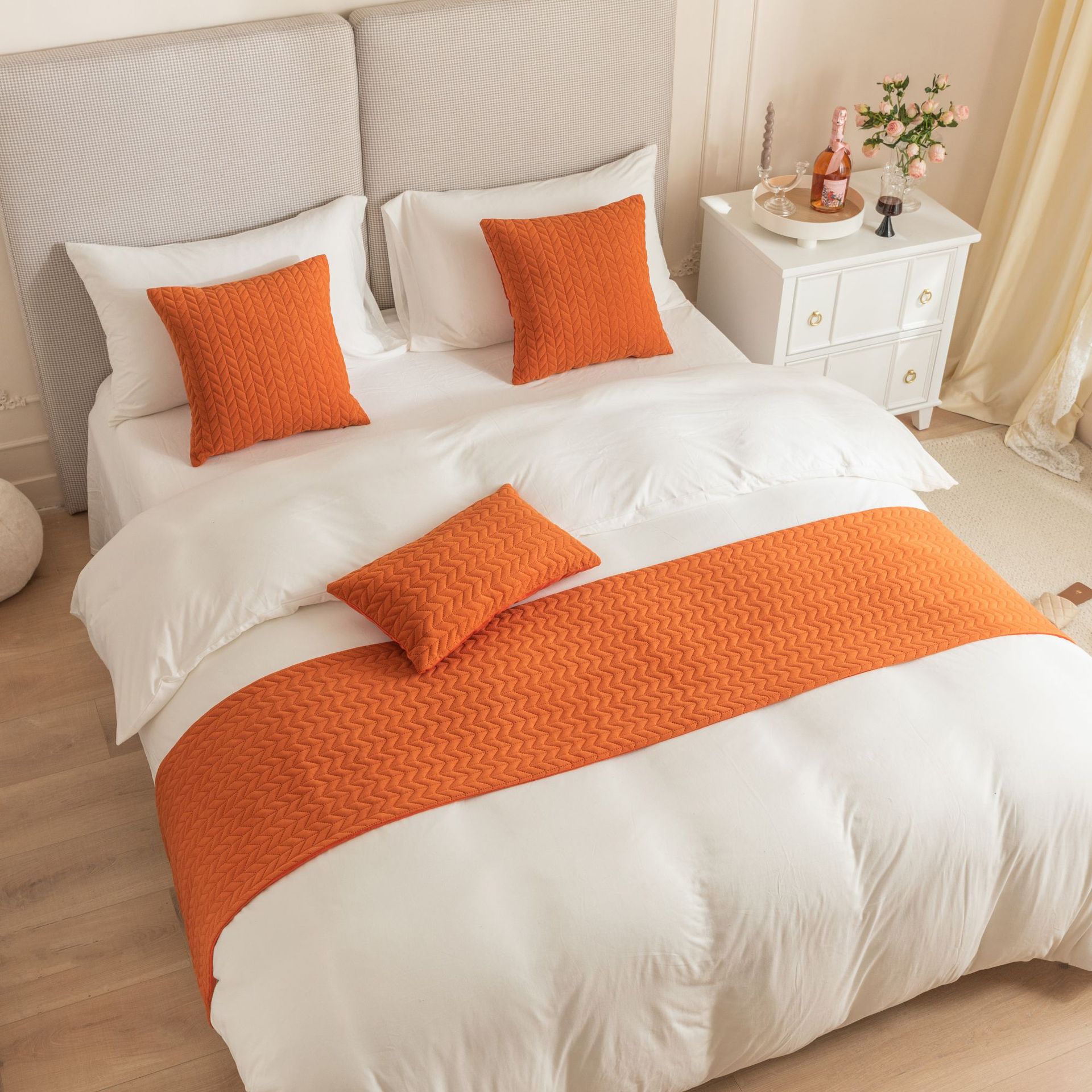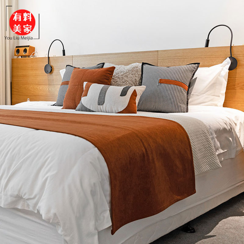 オレンジ色系布芸ソフトベッド旗ベッドテールタオル現代軽贅沢ホテルベッド掛けタオル千鳥格抱枕クッションセット