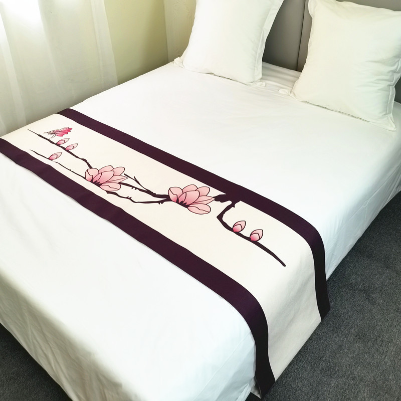 新しい中国式のベッド旗の古典的な水墨のハスの花のベッドの尾のタオルの禅の意の古風なホテルの宿屋の民宿のベッドの蓋の布のベッドの尾の旗
