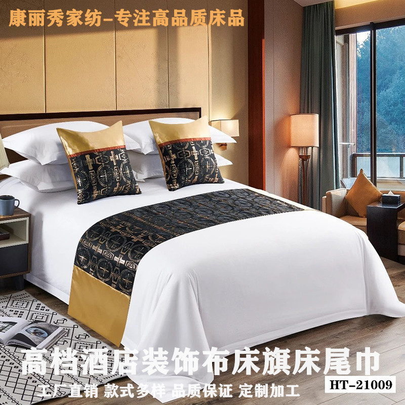 金条経典レトロファッション高精密ホテルホテル高級ベッド旗2023ベッド尾巾布草卸売り