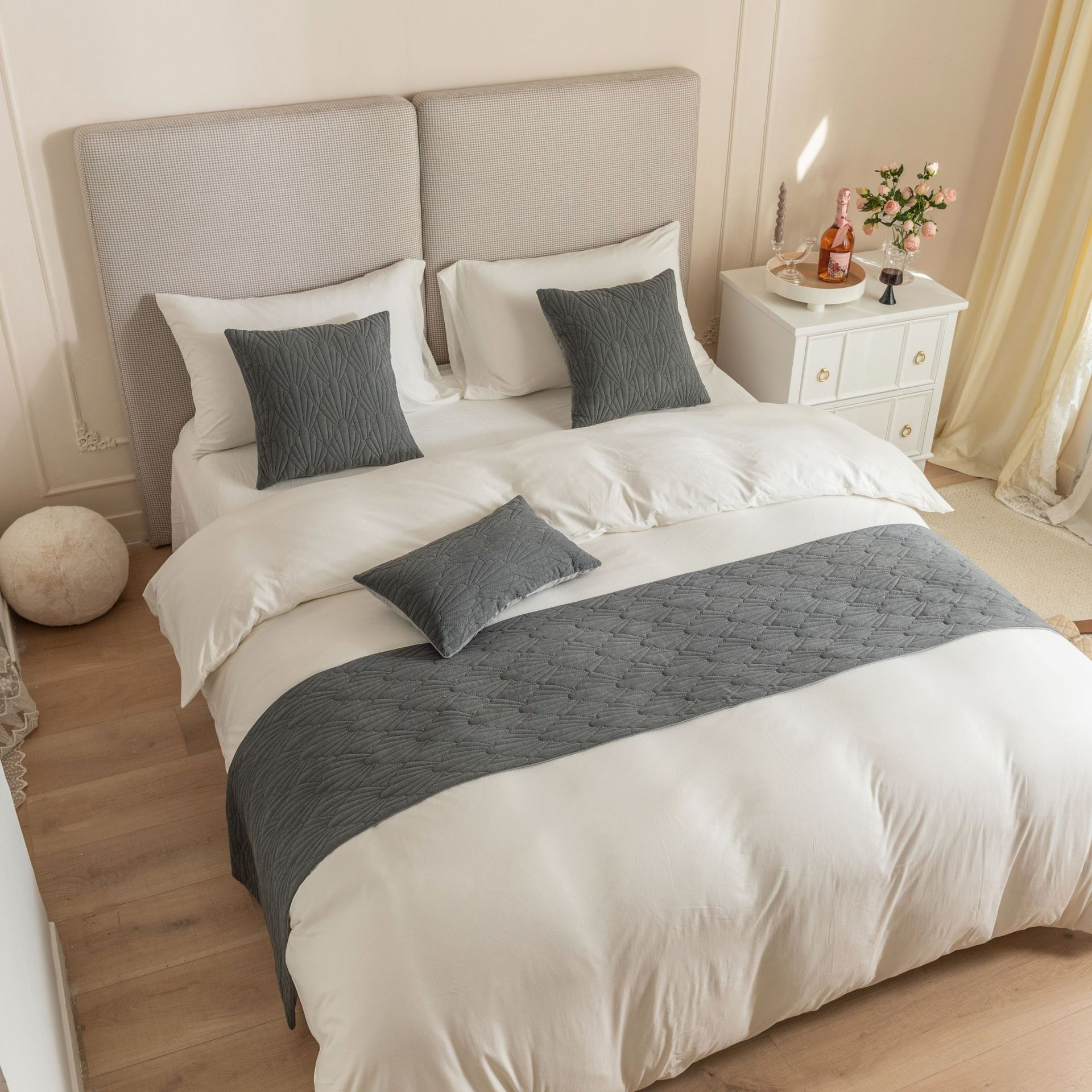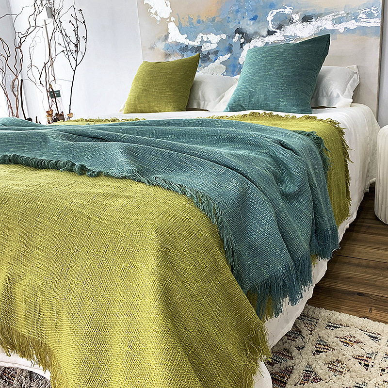 ホテルの民宿のベッドの尾のタオルの純色のジャカードの綿麻のベッドの旗のサンプルのベッドの装飾品の布の草は簡単で軽い贅沢なベッドの蓋です。