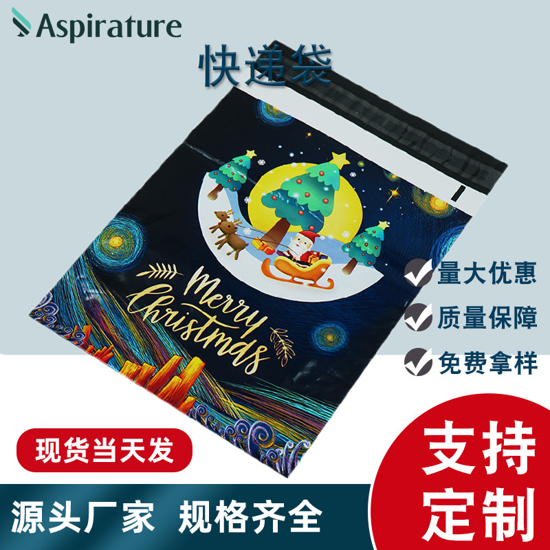 カスタム印刷最新の宅配便袋電気商物流包装袋クリスマス模様プリント速達袋郵便袋